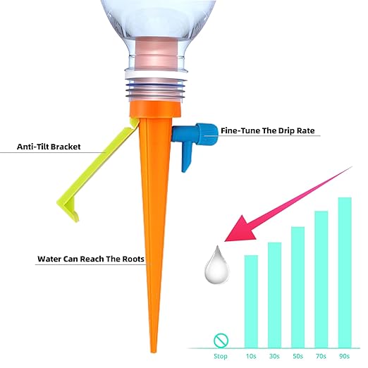 • 【Suitable for all bottles】The automatic watering spikes can be used for almost all sizes of bottles, and you can choose the bottle according to the amount of water the plant needs daily.