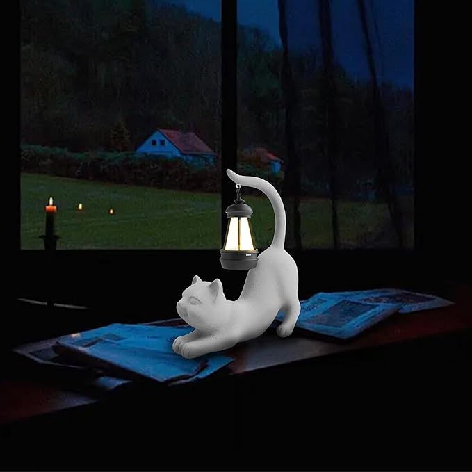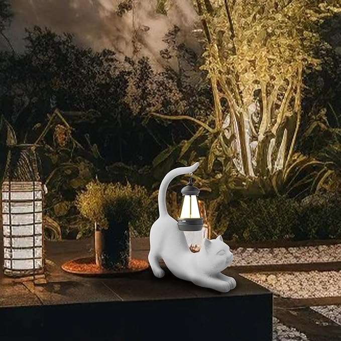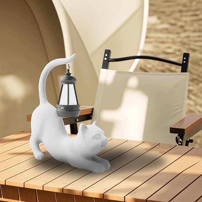 Solar Cat Garden Statue 10 Inch Porch Patio Decor for Outside Yard Decoration Outdoor Unique Housewarming Gardening Birthday Gifts for Cat Lovers Women Grandma