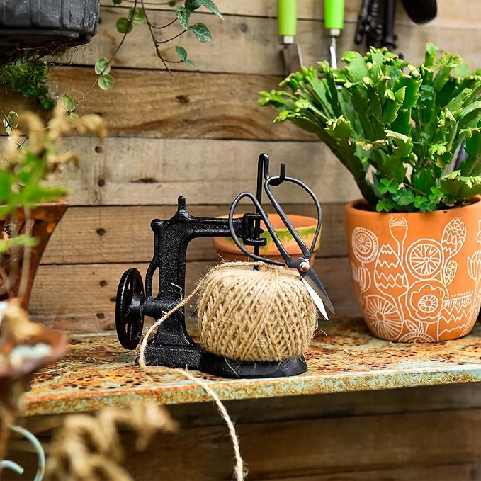 Sungmor Cast Iron Twine Holder and Scissors Set, Vintage Jute Twine Garden String Holder, Decorative Twine Dispenser with Cutter for Crafting, Gardening, Gift Wrapping, Sewing Machine Shape