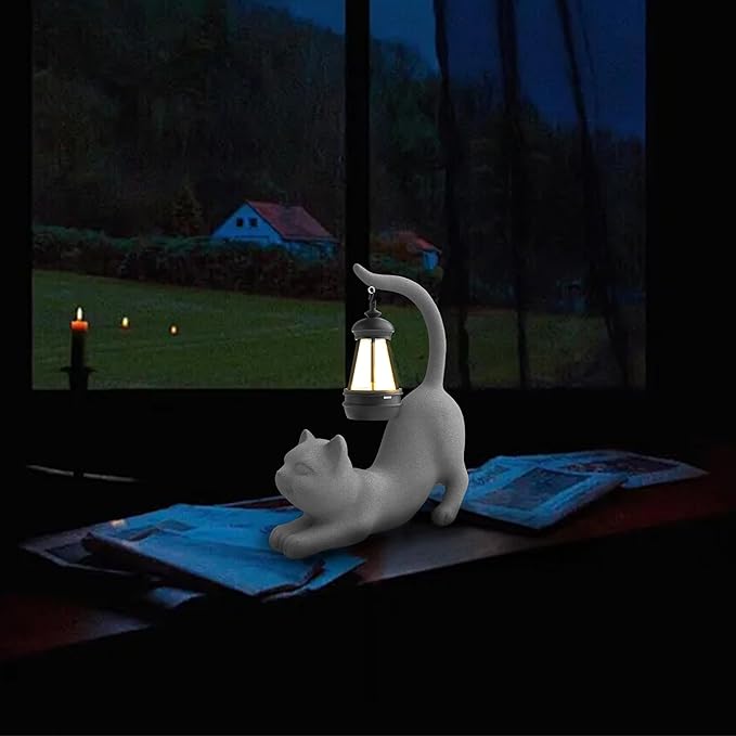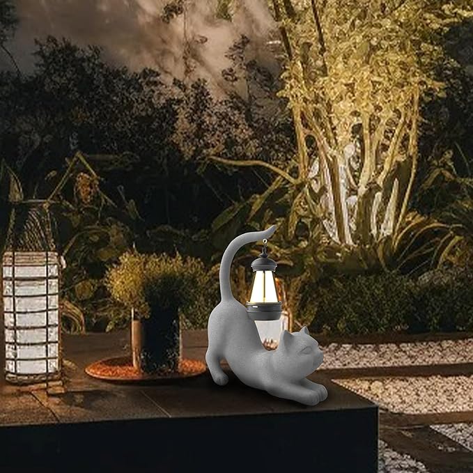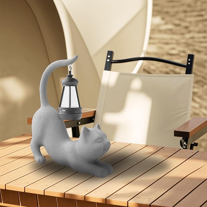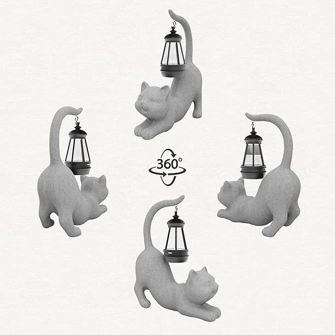 Solar Cat Garden Statue 10 Inch Porch Patio Decor for Outside Yard Decoration Outdoor Unique Housewarming Gardening Birthday Gifts for Cat Lovers Women Grandma