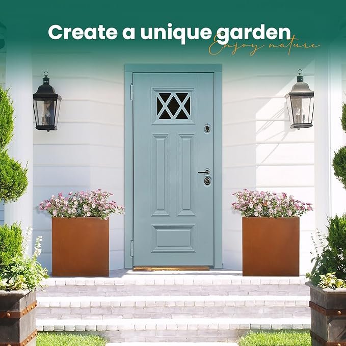 • 【 Durable Steel Planter】 Weather resistant corten steel is a type of steel that develops a protective layer of rust when exposed to atmospheric conditions. It means the life span of corten steel is 10 times longer than mild steel and 3-4 times longer than pre-painted steel.