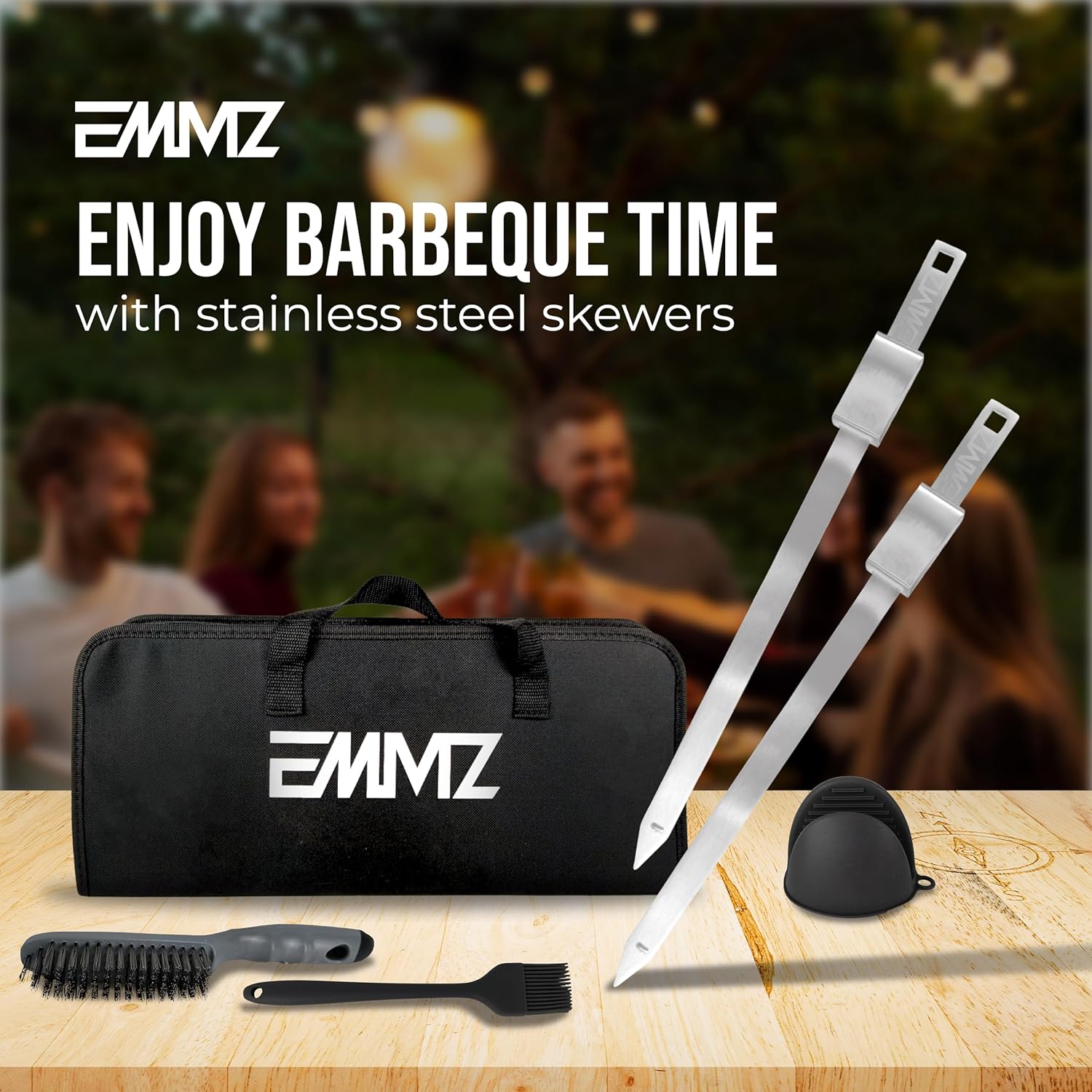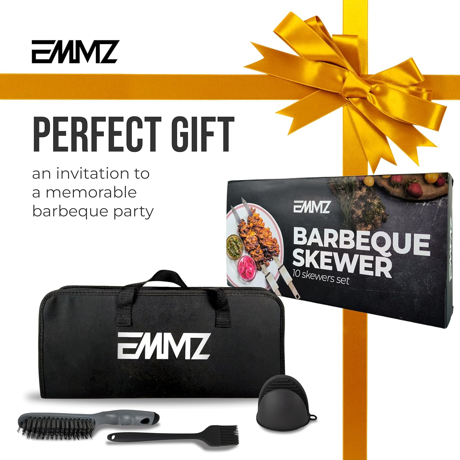 • Enhance your grilling experience with our bbq grill skewer set, bundled with essential grilling accessories including an oil brush, grill cleaning brush, and heat-resistant gloves. Perfect for any occasion, it makes an ideal gift, especially for Christmas!