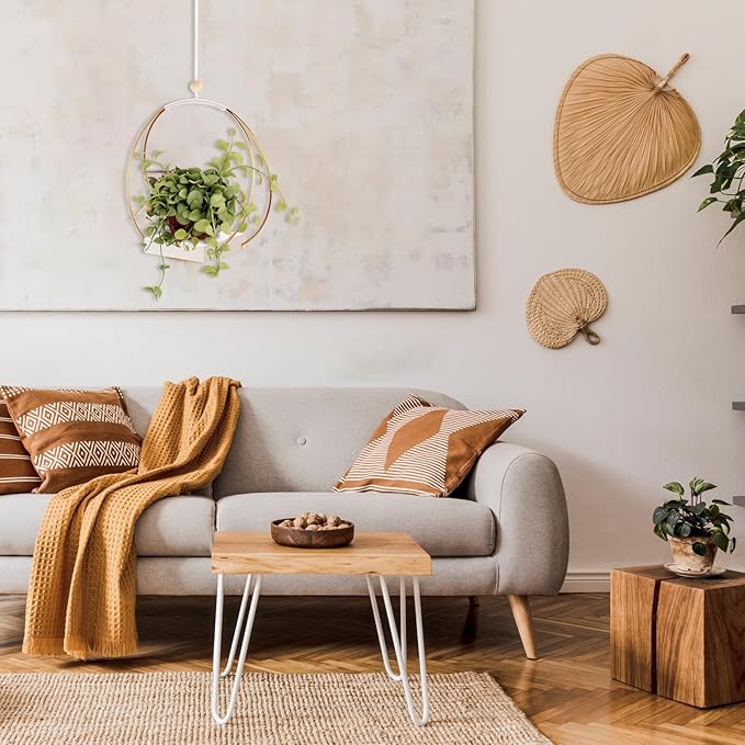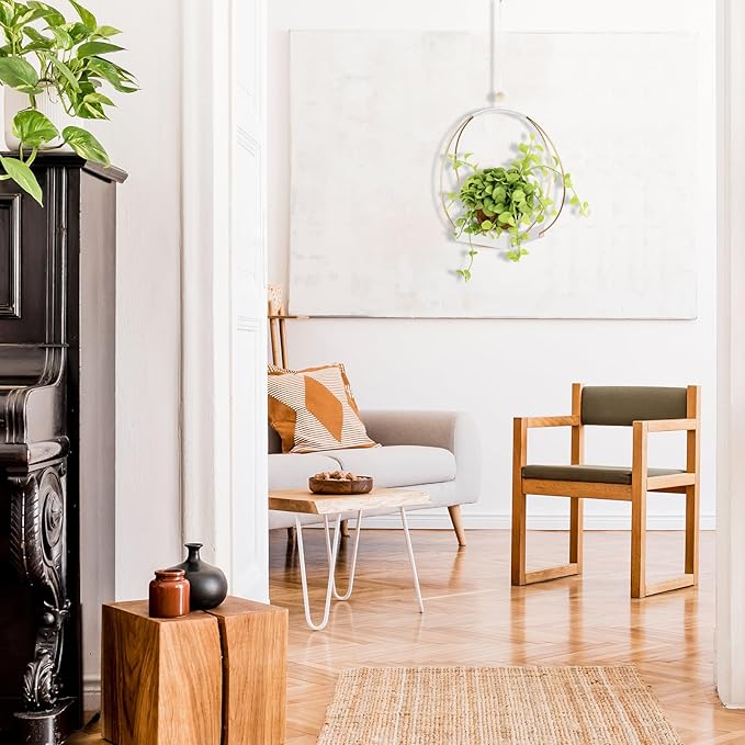 • 【Superior Metal & Wood Materials Hanging Planter】The planter hanger ring frame is crafted from high-quality iron and has a sturdy wooden base, guaranteeing stability and durability for hanging plants. Thanks to the wooden base, you can also hang scented candles and small decorations to decorate your home and office.