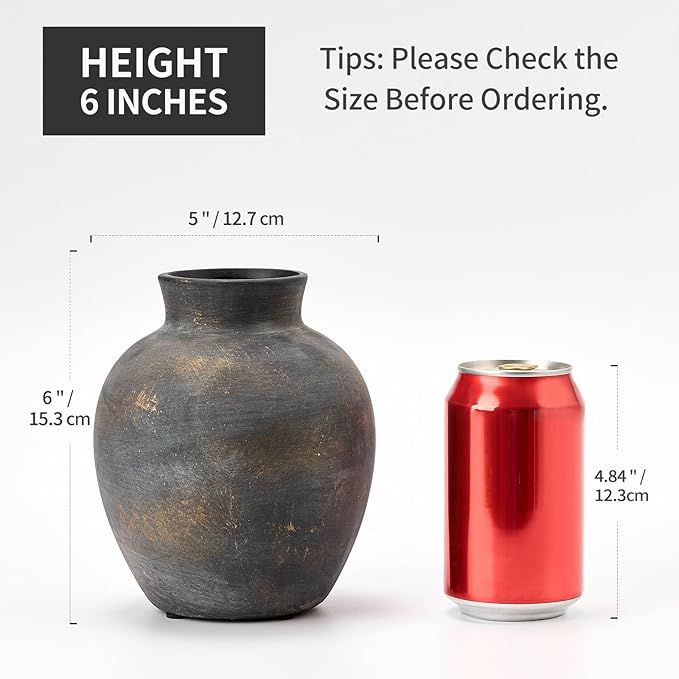 • ๐Œ๐ž๐š๐ฌ๐ฎ๐ซ๐ž๐ฆ๐ž๐ง๐ญ๐ฌ: The rustic vase measures 6" height and 5" width with 2.4" opening.Perfect for greenery and dry or faux florals,but also can hold water for fresh flowers.The vase itself can be displayed indoors or outdoor as a fine decorative piece.