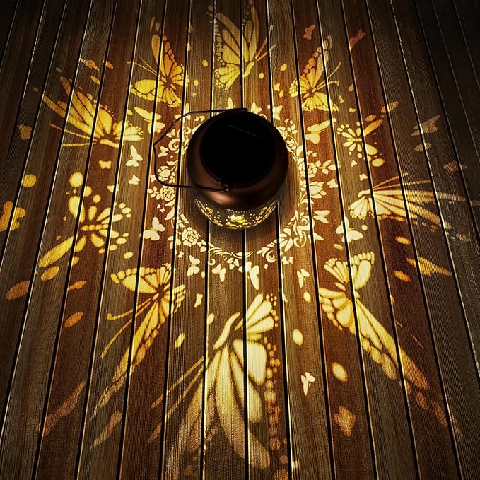 • Mothers Day Gifts for Women: The retro appearance, with gold copper color and hollow out metal veneer, the solar lantern casts bright and warm light in darkness, accompanied by gorgeous and graceful butterfly patterns