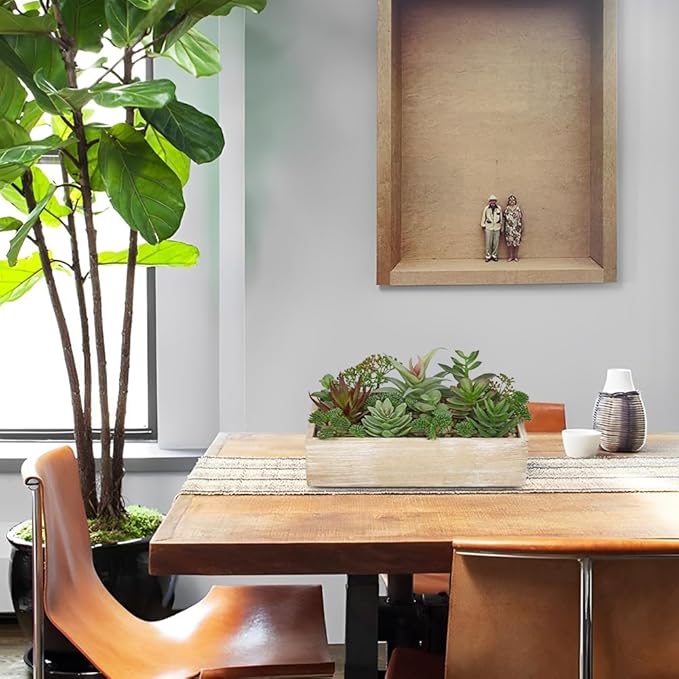 • Premium Material Design: Features high-quality polyethylene artificial succulents rooted in a sturdy rectangular wooden pot, topped with decorative pebbles for an authentic touch. The durable construction ensures stability while adding organic warmth to any space