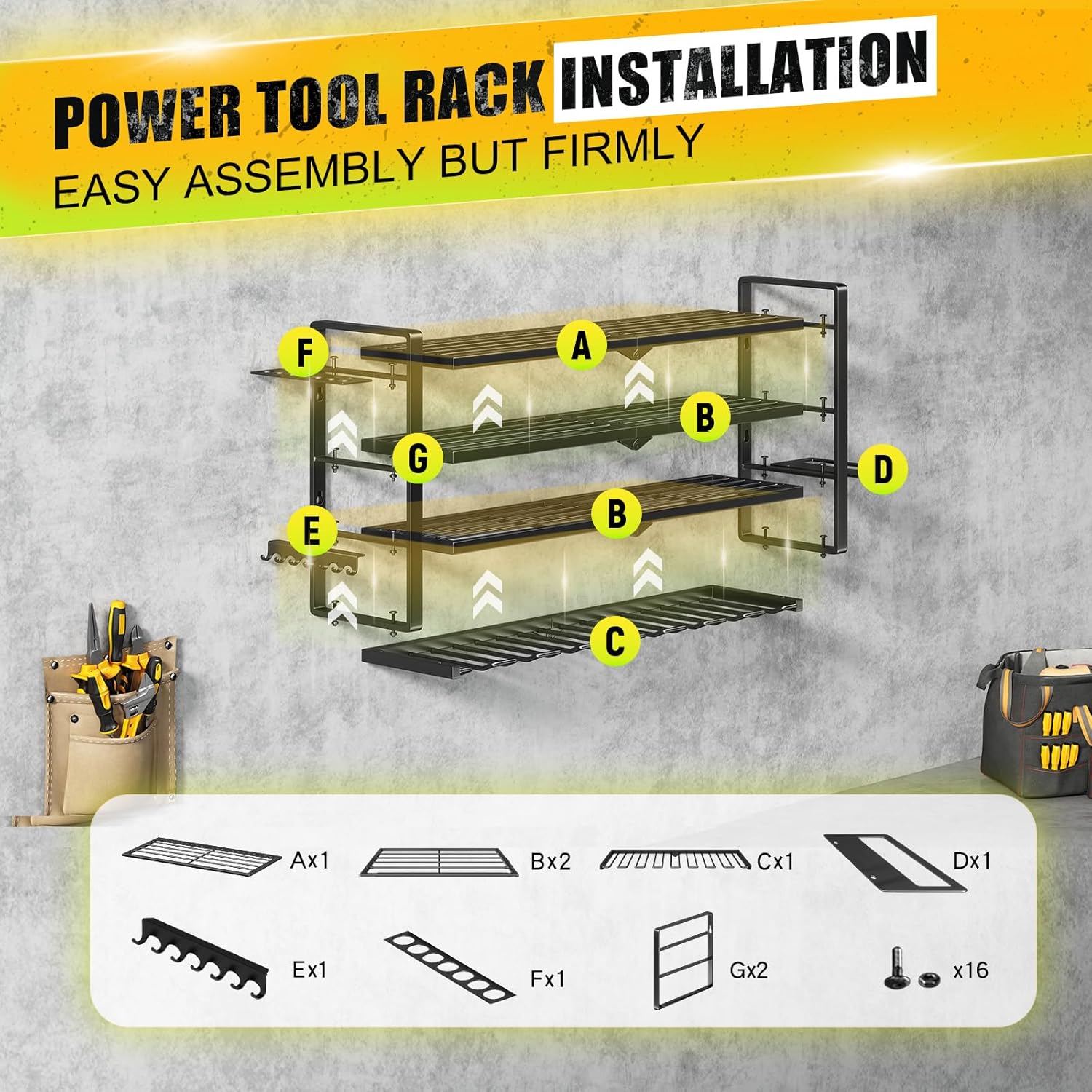 • Easy to Install: Our power tool organizer wall mount includes all necessary mounting hardware and clear instructions for easy installation. refer to the professional installation manual, you can assemble a perfect tool rack wall mount in just a few minutes.