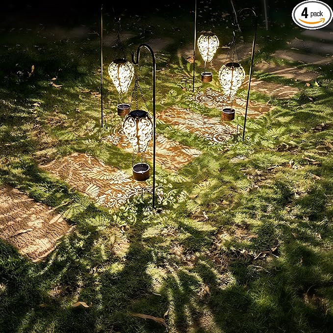 • 【Multiple Uses】This hot air balloon solar light can be hanging almost anywhere, such as from a tree, porch, or patio—ideal for adding a warm ambiance to your outdoor space. We also include a shepherd hook, allowing you to install the lantern in your lawn, backyard, flower bed, alongside a path, or even use it as a pathway light on your driveway or walkway. Perfect for both lighting and decoration.
