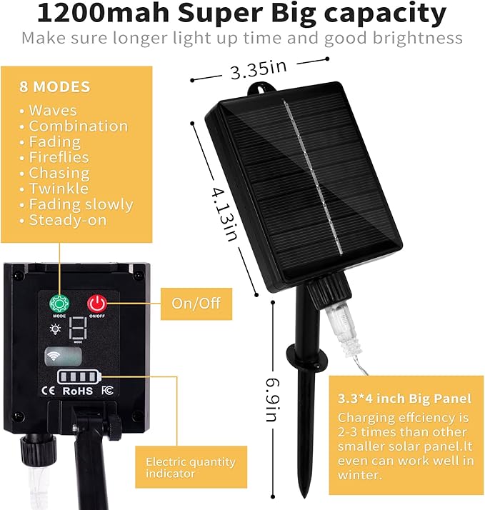 • 8 LIGHTING MODES: Combination, in wave, sequential, slo glo, chasing/flash, slow fade, twinkle/flash, and steady on. Different light's modes bring you different good mood.