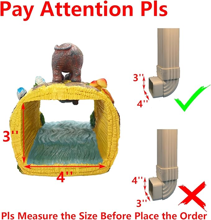 • Pay Attention The Fit Opening of Downspout Extender Decor: This charming elephants gutter downspout extension decoration measures 5.5” x 7.5” x 6.3”, fitting standard rectangular downspouts up to 3"x4". Please measure your downspout to ensure a perfect fit before placing your order.
