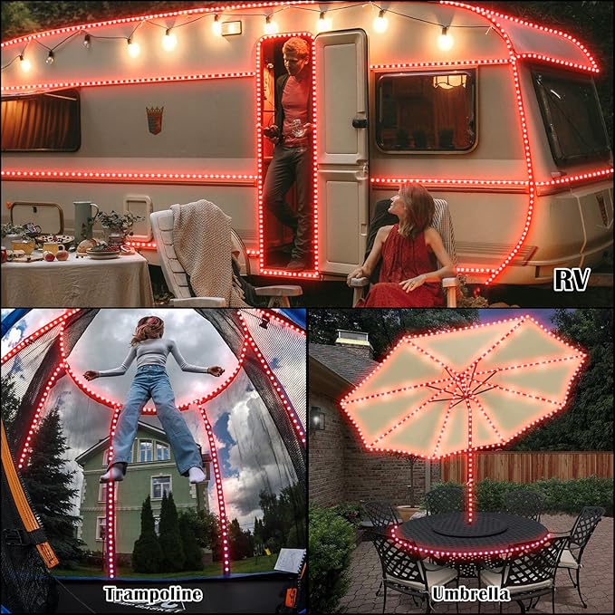 • Perfect Red Decoration: the rope Lights with red color suitable for Valentine's Day, Christmas, birthday, proposal, wedding, parties and other celebration occasions. LED rope lights flexible feature enables to be easily bent into different shapes perfectly, you can twine it on window, roof, garden, balcony, porch, hallway, fence, tree, trampoline, holiday tree to create an intense romantic atmosphere.