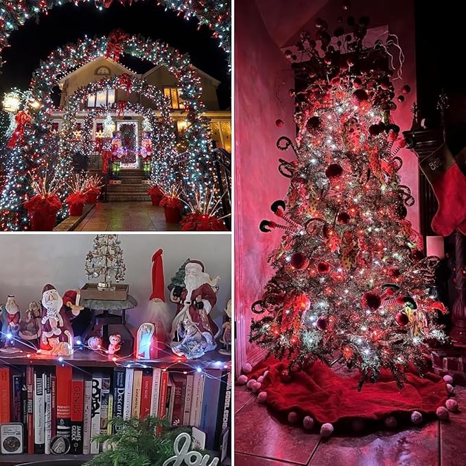 • 8 Lighting Modes Solar Christmas Lights: Red&White solar christmas lights outdoor are 8 different settings on the back of the solar panel to creates a dreamy feeling and your garden looks like a enchant fairy land at night. Red&White christmas lights are an amazing addition to your yard, create a pleasant mood for events, parties or weddings