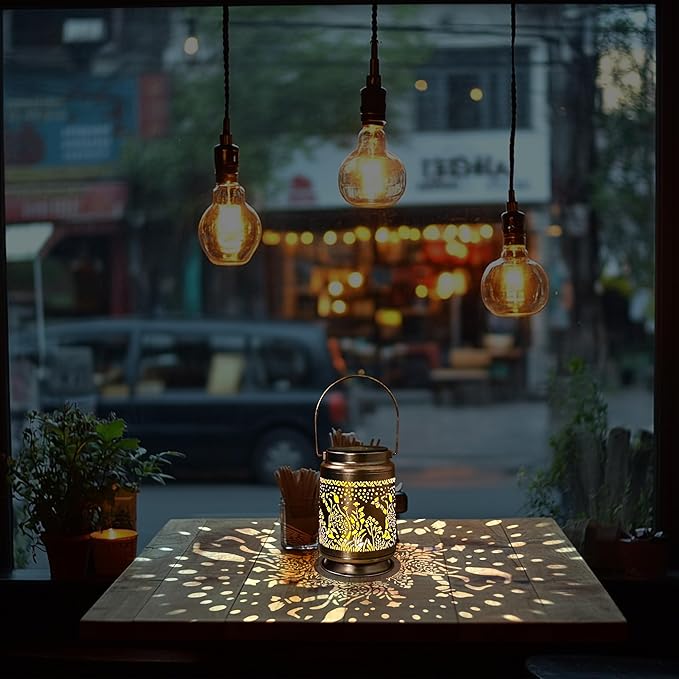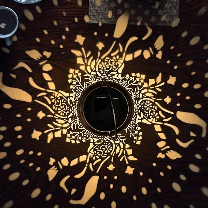 • Perfect Decorative Unique Design:This solar-powered outdoor lantern features an intricate dog and floral cutout pattern that casts a warm, enchanting glow ,The vintage garden decor Solar Lantern pet dog outdoor camping waterproof lights retro appearance, with gold copper color and hollow out metal veneer, the solar outdoor lanterns casts bright and warm light in darkness, accompanied by gorgeous and graceful dog patterns, adding a beautiful atmosphere to the surrounding environment.