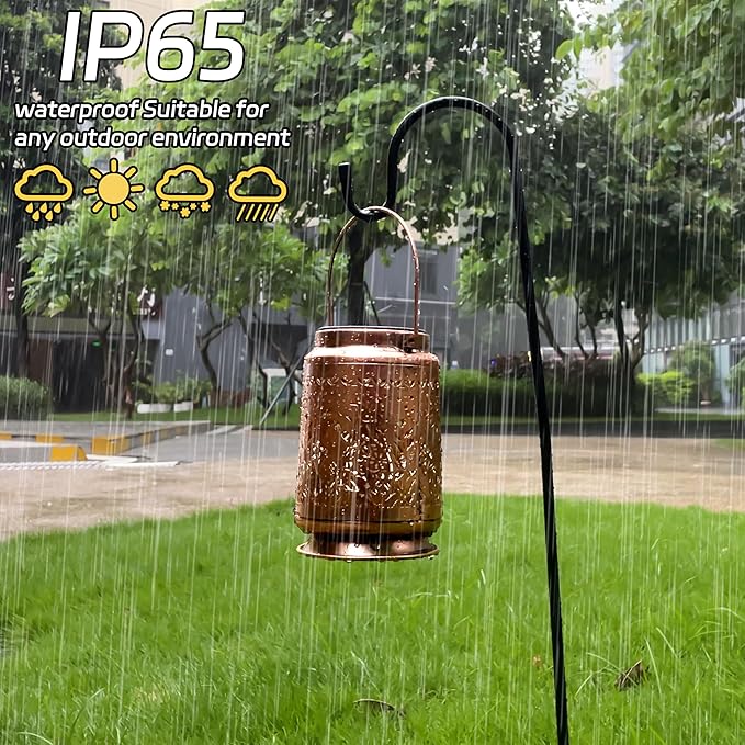 • Durable Lanterns Solar Lights outdoor IP65 Waterproof Construction: Crafted with durable, weather-resistant materials, the lantern can withstand exposure to rain and moisture,the dog outdoor lantern is made of metal which is sturdy and durable. IP65 waterproof rating design, don't worry about rain, solar garden lights can work on rainy days, Solar lantern power supply, no electricity charge, no power cord required, easy to use.