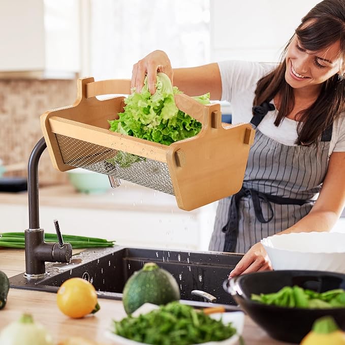Garden Harvest Basket Mesh Storage with Handle Versatile Gardening Fruits Vegetables Gathering Basket Garden Supply Gardener Gift Spring for Washing Holding (Wood Color,13.4in)