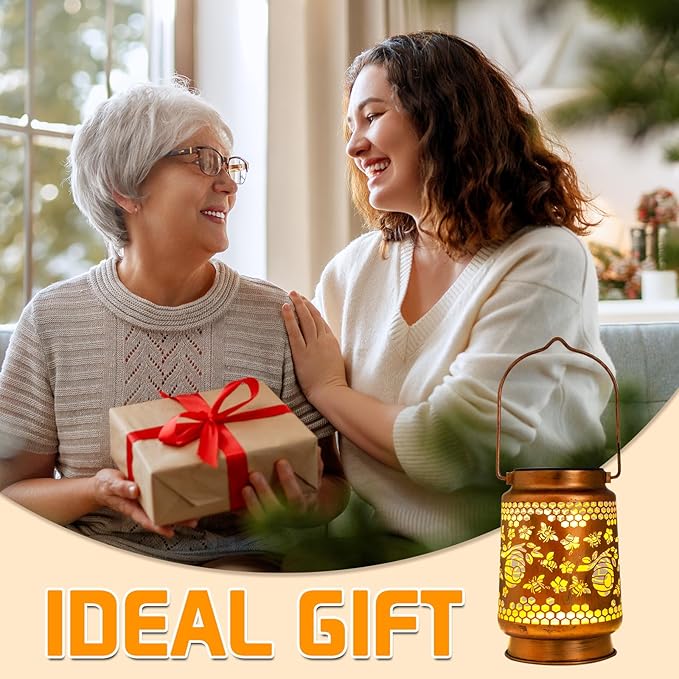 • 【Charming Vintage Style】The Bee lanterns with its elegant antique bronze finish and delicate cut-out patterns, this solar lantern casts a soft, inviting glow after sunset. Ideal for adding a touch of whimsy to your garden, it complements various outdoor settings while creating a warm and welcoming atmosphere.