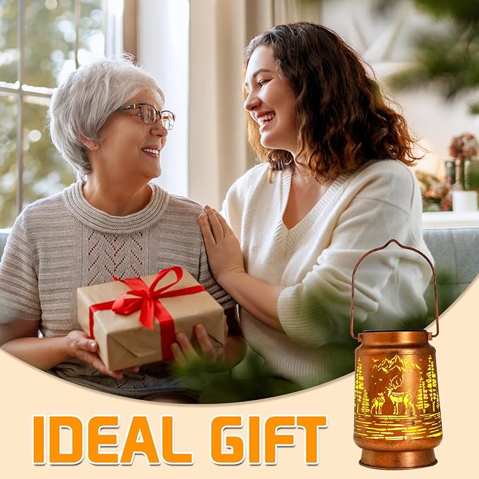 • 【Charming Vintage Style】The Deer lanterns with its elegant antique bronze finish and delicate cut-out patterns, this solar lantern casts a soft, inviting glow after sunset. Ideal for adding a touch of whimsy to your garden, it complements various outdoor settings while creating a warm and welcoming atmosphere.