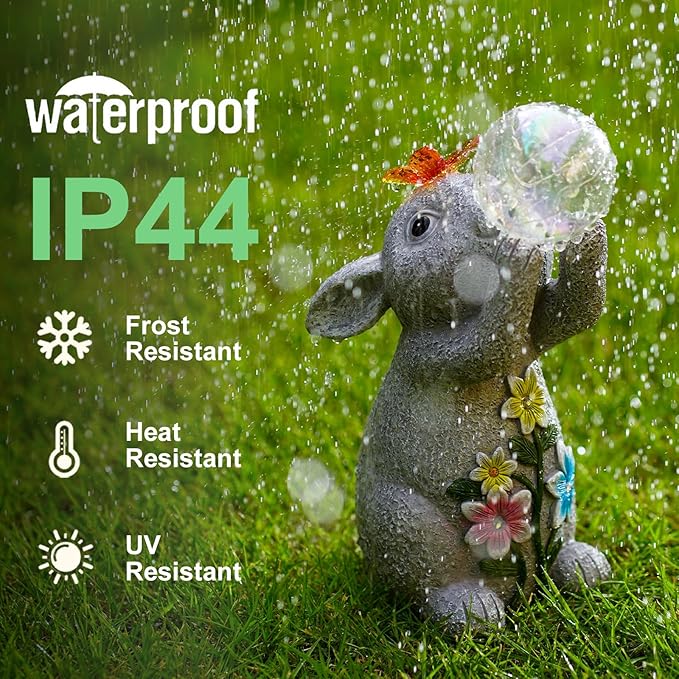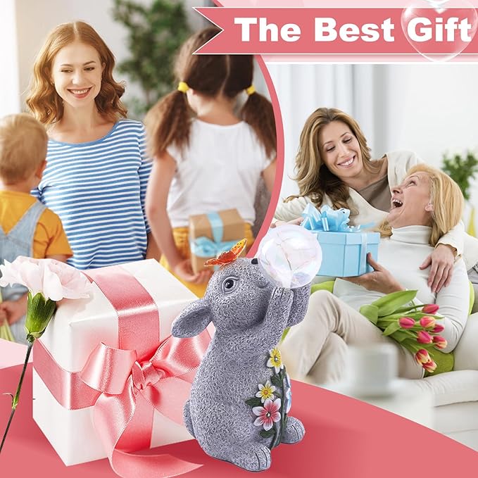 • 【Solar Powered】: The funny rabbit statue with solar bubble light that charges during the day and automatically turns on at night, creating a beautiful illuminated effect in your garden or yard to enhances the ambiance of your outdoor space