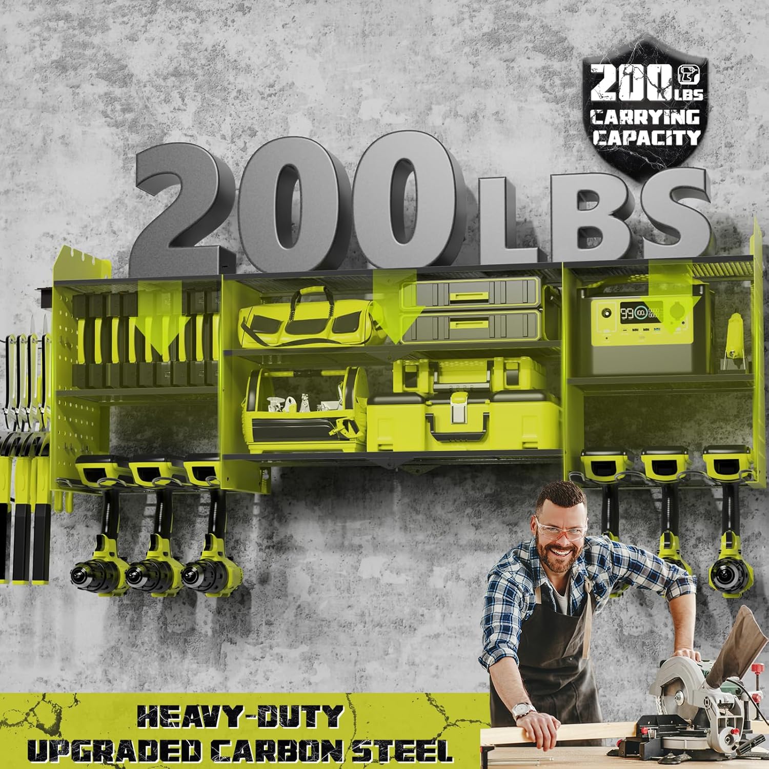 • Stable Structure with High Load Capacity: Made from heavy-duty upgraded carbon steel, this wall-mounted tool organizer is strong, stable, and resistant to deformation, supporting up to 200 lbs (40 lbs per shelf). It features easy assembly with included Phillips screws and screwdriver for a hassle-free installation