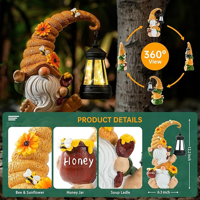 • Versatile and Easy to Use: The gnome and lantern can be used together or separately, offering flexible decoration options. Simply turn on the side button and place in direct sunlight for optimal performance. Perfect for enhancing any garden style.