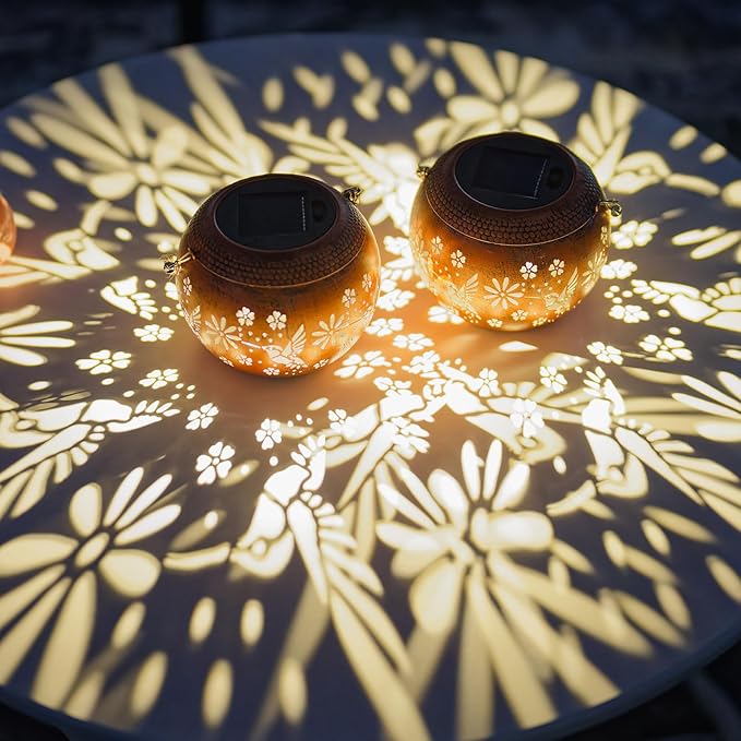• 【Graceful Garden Decor】: The real charm of these solar lanterns is their capacity to project delicate hummingbirds and flowers onto the surrounding area. The outdoor solar lanterns emit a bright and warm light that enhances the beauty of your garden or patio, creating a magical atmosphere perfect for evening gatherings.