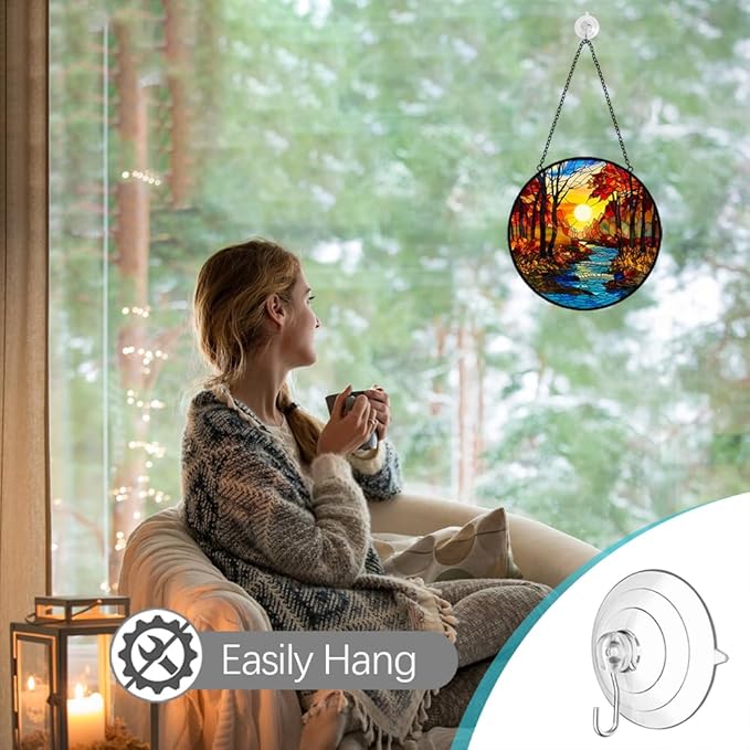 • Indoor Outdoor Decor Festival Gift: Creative painted glass hangings add a colorful glow to your life.Window hanging fit for indoor decor for bedroom, bathroom, kitchen, door, cafe, office, classroom, porch, balcony, etc. Also lovely outdoor decor for garden, patio, party and RV camping. Also it makes an ideal gift for mother, wife, grandmother, teacher, friend and nature lover, expressing love and appreciation for any holiday occasion