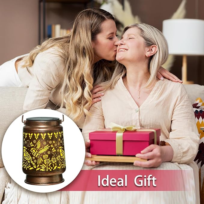 • WEATHERPROOF & EFFICIEN SOLAR POWERED LANTERN: The solar lantern charges 6 hours in daylight for 8+ hours of night glow (switch on). IP65 waterproof, it shines through rain, ensuring continuous light. Crafted for durability, its upgraded solar panel stabilizes string lights. Effortless operation: press to activate, auto on/off at dusk/dawn. No electricity, cords, or maintenance needed. Please ensure that the power switch is in the "ON" position when using.