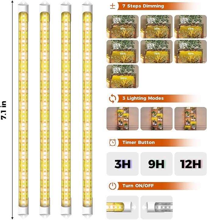 • Plant Stand with Grow Light: The plant light contains 3 supplemental light modes: 1. 48 leds warm white(3000k), only 3000k high uniform light ,like sunlight improve seeding growth ; 2. 48 leds Red (660nm): promote plant growth , flowering and fruit; 3. Red+ Warm White (380nm-780nm), Provide universal full spectrum which can meet the light conditions your plants need most in different stages