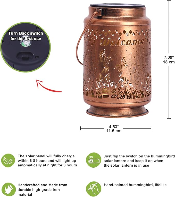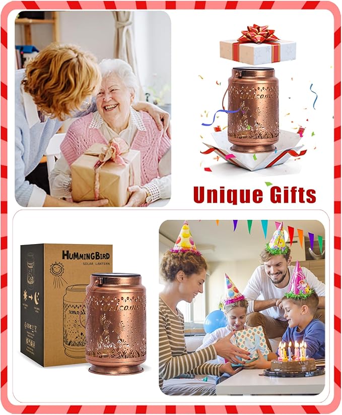 • 𝐀 𝐆𝐫𝐞𝐚𝐭 𝐆𝐚𝐫𝐝𝐞𝐧 𝐆𝐢𝐟𝐭:The solar lantern comes in his own beautifully designed box. A perfect choice as a gift for Mom;Grandma;Wife;Daughter;Sister; girlfriend; wifes wedding anniversary;childs birthday; Mothers Day;Fathers Day; Valentines Day and Christmas