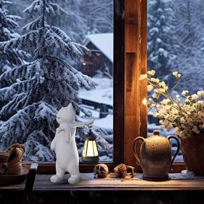 Solar Powered Garden Resin Statue Lights, 10 Inch Waterproof Outdoor Animal Cute Cat Figurine Lights, Suitable for Patios, Balconies, Lawns, Courtyards, Etc (Walking)