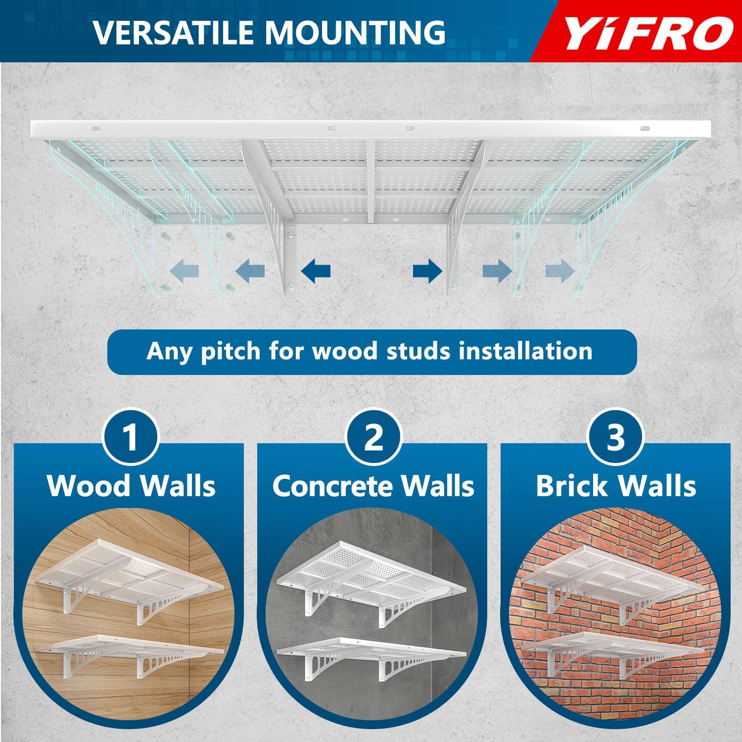 • ADJUSTABLE SPACING: YIFRO garage wall shelves is suitable for any wood post spacing, including standard 16'/18'/24'/32' spacing for installation.