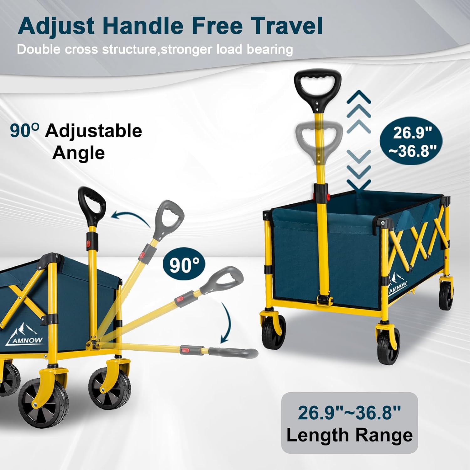 • AFTER SALES - EASY TO ASSEMBLE - COLLAPSIBLE WAGON: The wagon will come with an instruction manual when you receive it, so even a child can easily assemble it easier than assembling blocks, and it can be put into use at any time. Whether you're going camping, surprise shopping, or tidying up the garden, the AMNOW wagon is your faithful companion. We also offer a one-year warranty, so if you have any problems during use, please contact us promptly
