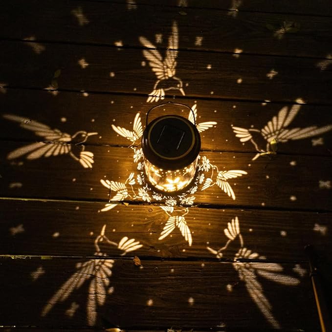 • 【Delicate Hummingbird Pattern】- The hanging solar lantern adopts retro hollow design with warm light with hummingbird pattern, casting beautiful patterns on the wall or lawn, which bring life and fun to your garden, a creative and ideal gift for grandma, mom, women and friends during holidays.