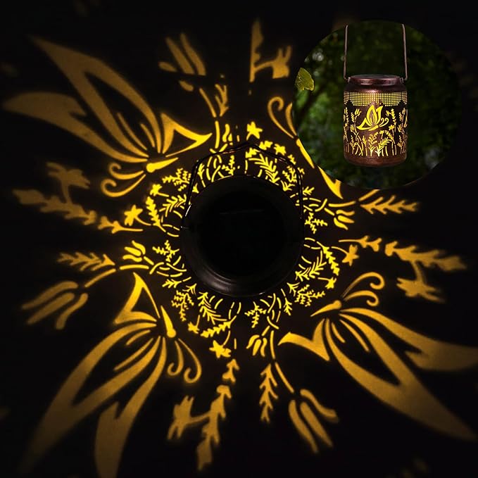 • 【Delicate Butterfly Pattern】- The hanging lantern adopts retro hollow design with warm light with butterfly pattern, casting beautiful patterns on the wall or lawn, which bring life and fun to your garden, a creative and ideal gift for grandma, mom, women and friends during holidays.