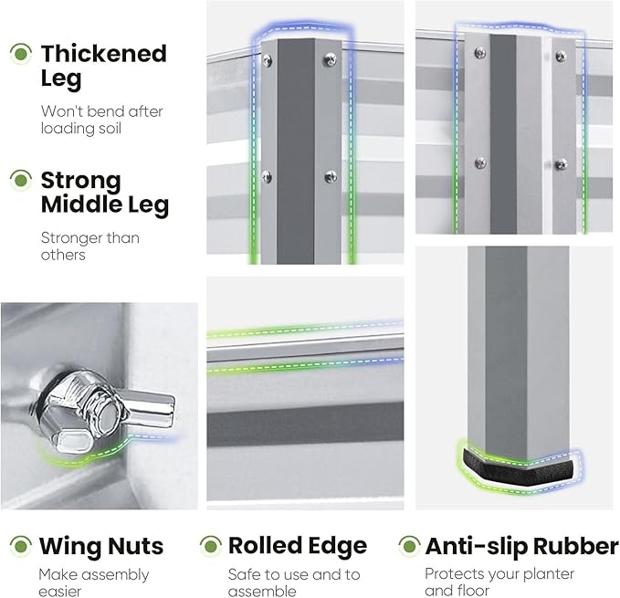 • 【Sturdy & Durable, Capacity: 600 lbs】Our galvanized steel planter raised bed is rust-resistant, sturdy, and can support up to 600 lbs. More durable than wooden raised garden bed kit, it ensures a longer lifespan without the worry of cracking or warping.