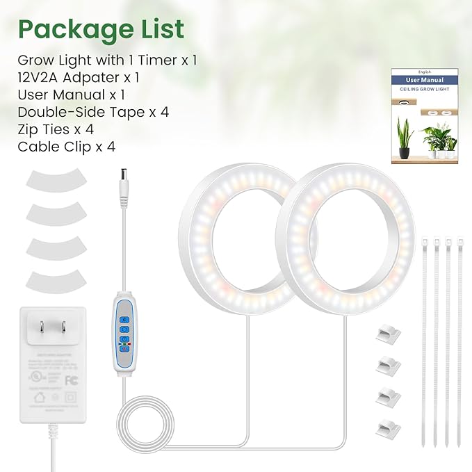 • 【Easy Installation and Wire Clips for Tidy Setup】The package included ties, strong double-sided tape, and wire clips for a secure and tidy setup. The power cord is 118 inches long for easy using in window wells, plant shelves, under cabinets and more. Create a thriving indoor garden with this grow lamp