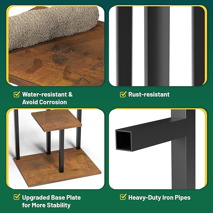 • 【Stable and Sturdy】This metal plant stand is made of heavy-duty iron pipes and thickened particleboard, with a sturdy structure, strong load-bearing capacity and long-lasting durability. The surface of the iron pipe is coated with a special paint to avoid rust. The particleboard is crack-resistant and coated with a waterproof layer to avoid corrosion, warping and curling caused by residual water.