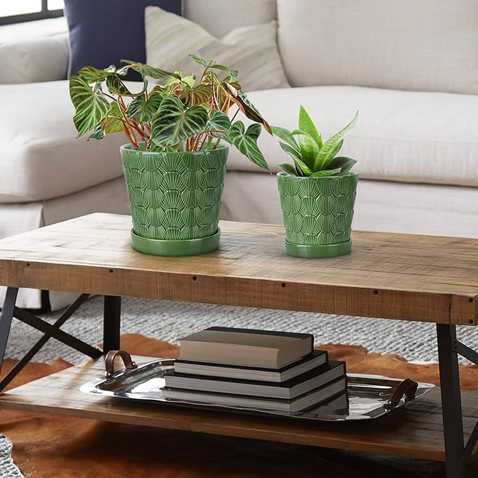 • Chic Modern Design: These flower pots with stylish shell embossed shell patterns are inspired by contemporary ceramic art. Their minimalist aesthetic effortlessly enhances any space, adding sophistication and charm to your home or office