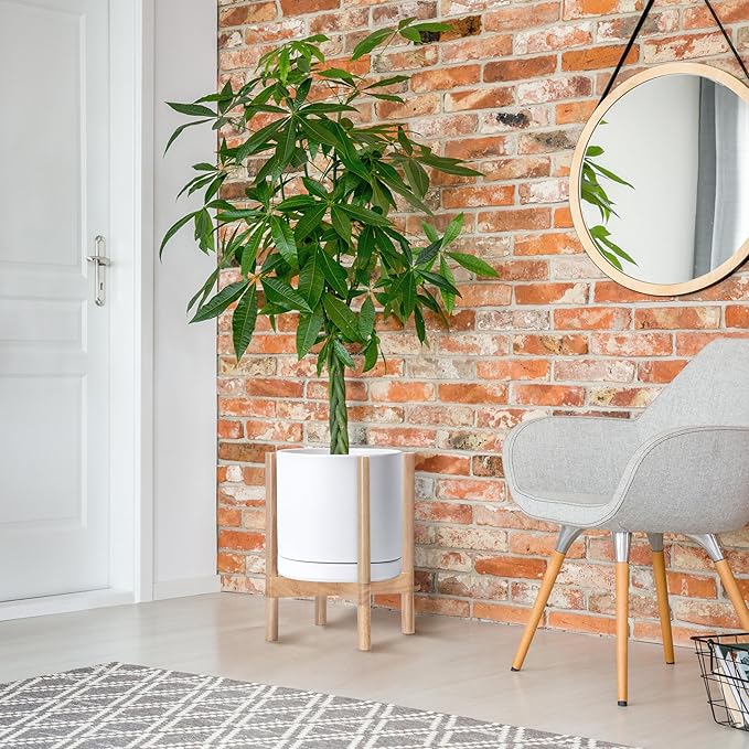 • A Complete Set: Mid-century ceramic planter, combined with a natural color, sculptural, solid wood stand that match perfectly together and looks great in anywhere.