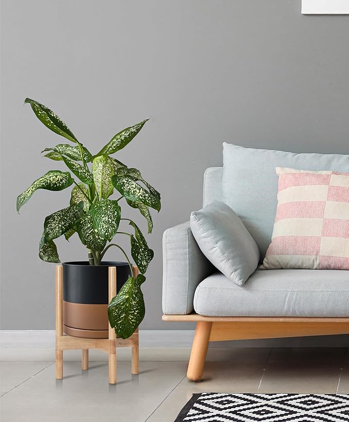 • A Complete Set: Mid-century ceramic planter, combined with a natural color, sculptural, solid wood stand that match perfectly together and looks great in anywhere.