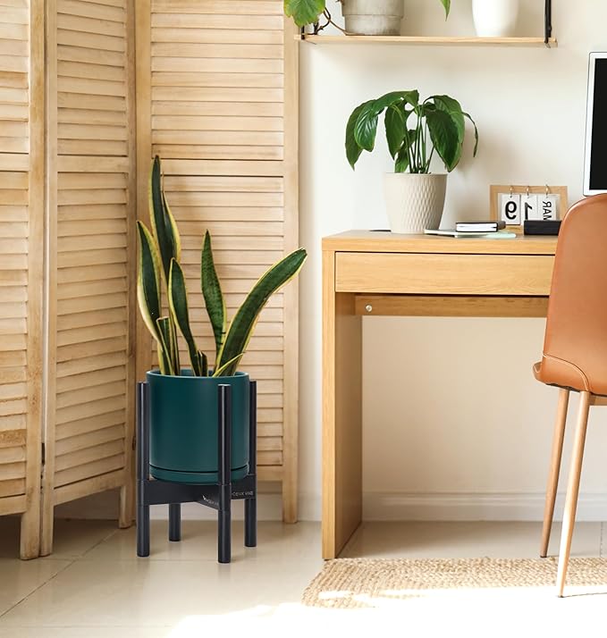 • A Complete Set: Mid-century ceramic planter, combined with a ebony wood stand that match perfectly together and looks great in anywhere.
