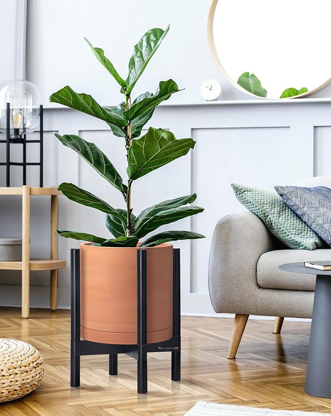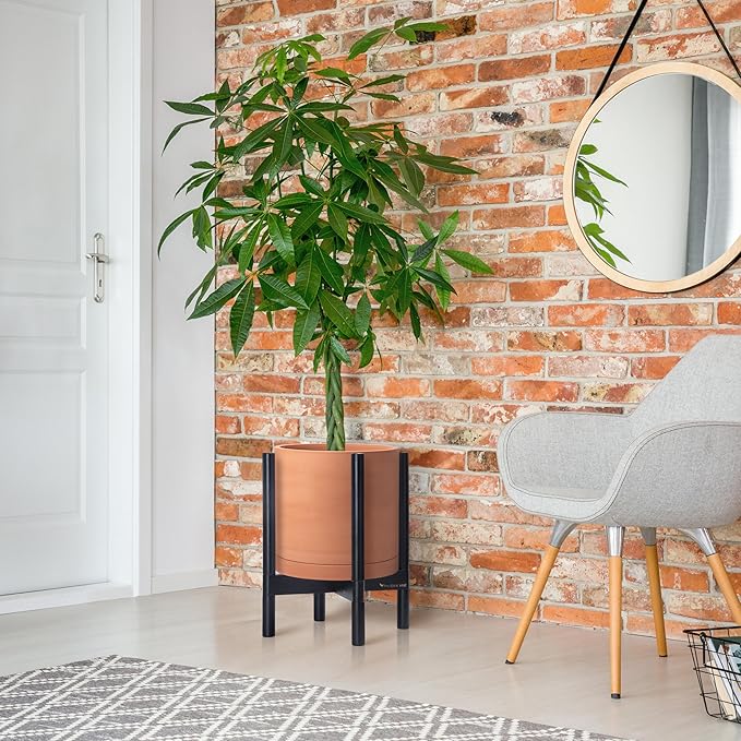 • A Complete Set: Mid-century terracotta planter, combined with a ebony wood stand that match perfectly together and looks great in anywhere.