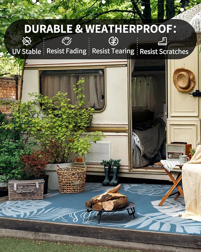 • RV traval&Camping: This camper must haves outdoor rug is ideal for picnics, gatherings, and RV trips! The lightweight outdoor camping carpet with foldable lines is easy to carry and saves space. Includes an extra carry bag and rug stakes for 6x9 ft, 8x10 ft and 9x12 ft. Grass-friendly, durable, and easy to clean, this outdoor rug enhances outdoor adventures.