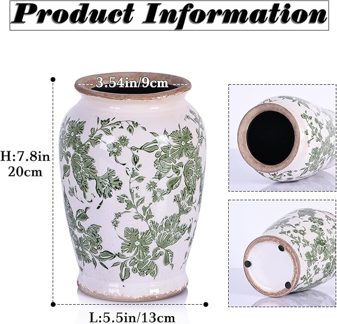 • Rustic flower vase: This porcelain vases measures approximately: 8.3 inches high, 5.5 inches in diameter/21*14 cm, can be used to display fresh or artificial flowers on shelves, mantels, tables or other surfaces, adding charm to living rooms, dining rooms, bedrooms, etc.