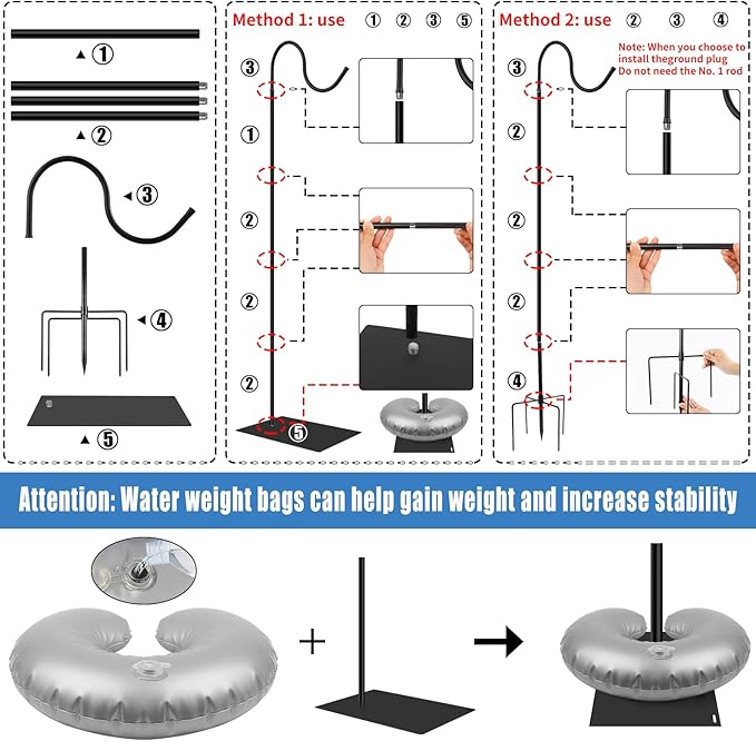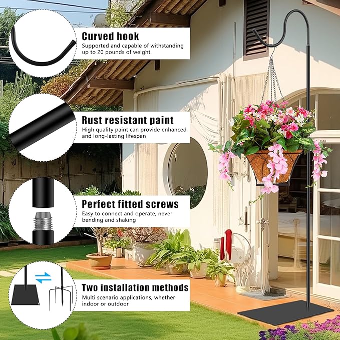 • Outdoor and Indoor Decoration: Our bird feeder pole will add charm for any activity, party or wedding, whether you are decorating the garden outdoors, hanging garden lights, bouquets, hummingbird feeders, etc. Or hang succulent plants indoors, etc. It can be well integrated into various decoration styles of homes, courtyards, and gardens