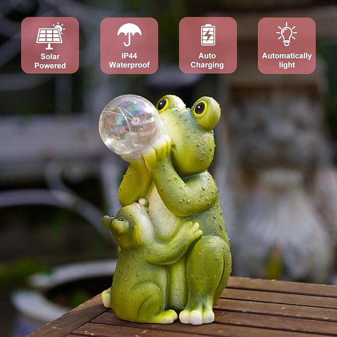 • 【Solar Powered】: The frog statue with solar bubble light that charges during the day and automatically turns on at night, creating a beautiful illuminated effect in your garden or yard to enhances the ambiance of your outdoor space