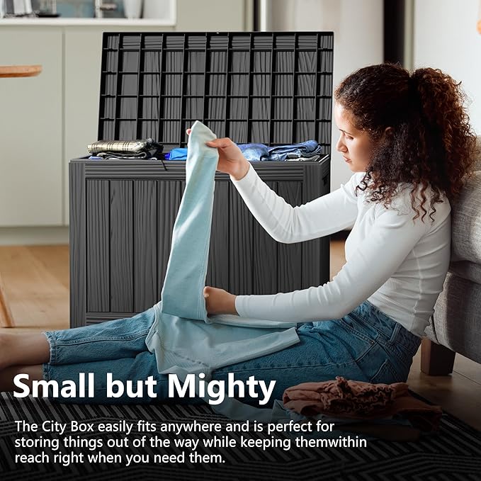 • ADAPTABLE TO VARIOUS SCENES: Whether used as an indoor laundry storage chest or an outdoor deck box container for items like outdoor cushions, garden tools and pool accessories, this patio storage box provides abundant space. It's also versatile as a side table, yard seat, storage bench, or footrest