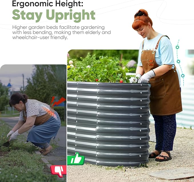 • 【32-Inch Height & Comfortable Gardening Companion】Say goodbye to backaches from gardening! Our 32-inch tall raised planter box provides ample space for root growth, ideal for planting deep-root vegetables and fruits like potatoes, carrots, and beets. It's extremely user-friendly for people with back discomfort, the elderly, and wheelchair users. Additionally, this height helps protect your crops from small animals.