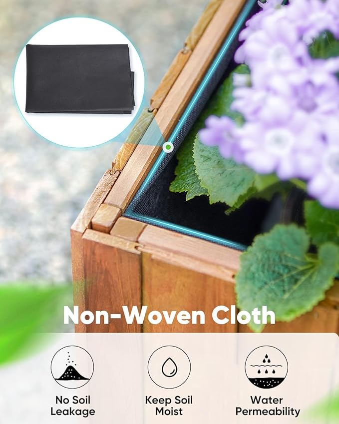 • 【Liner Included】Rustic planter box with trellis is equipped with non-woven cloth liner, it can prevent soil leakage, keep soil moist, and drain excessive water. It also protects wood planter bed, make it more durable.