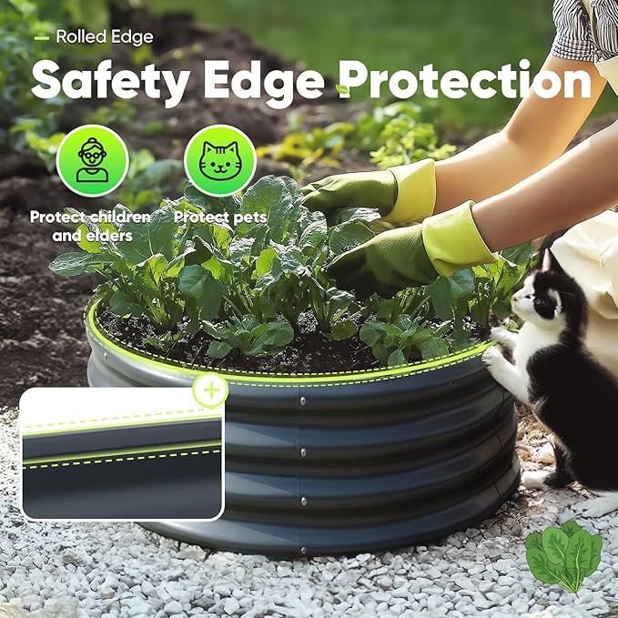 • 【Elevate Your Garden's Appeal】Beautify your yard, garden, greenhouse, or lawn with our round garden bed, featuring a sleek rounded outline. Ideal for planting vegetables, fruits, flowers, and herbs, it helps you create a dedicated area for strawberries, making your outdoor space both practical and attractive.